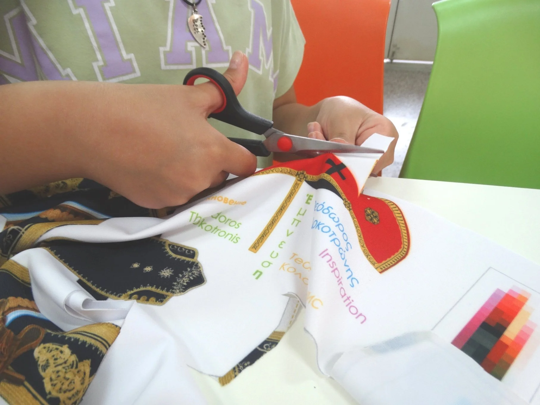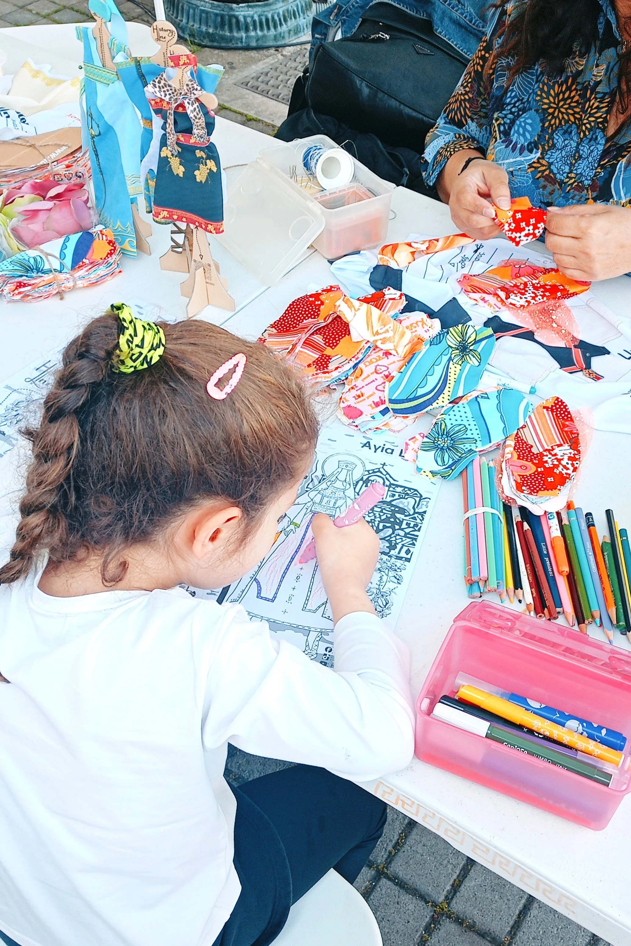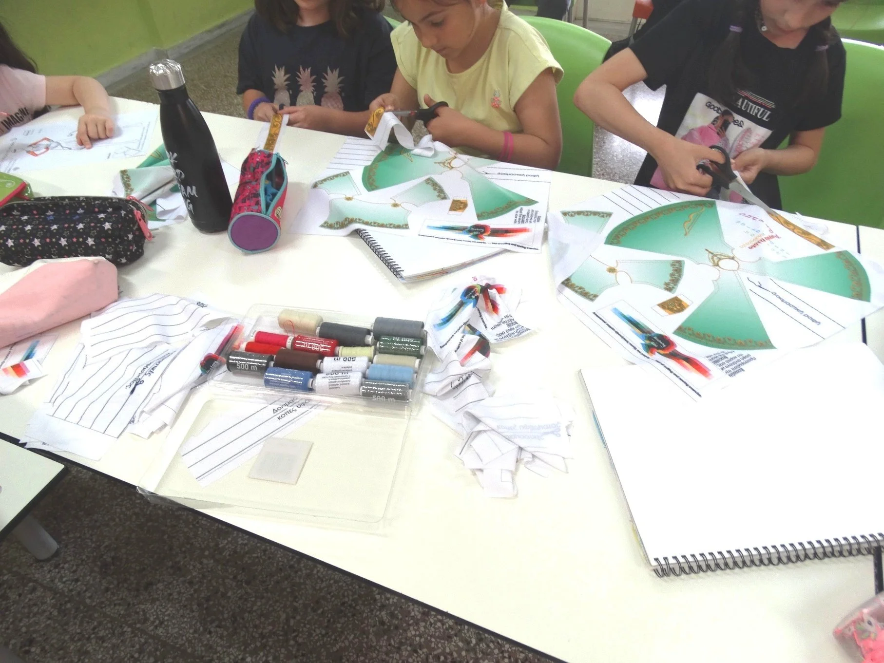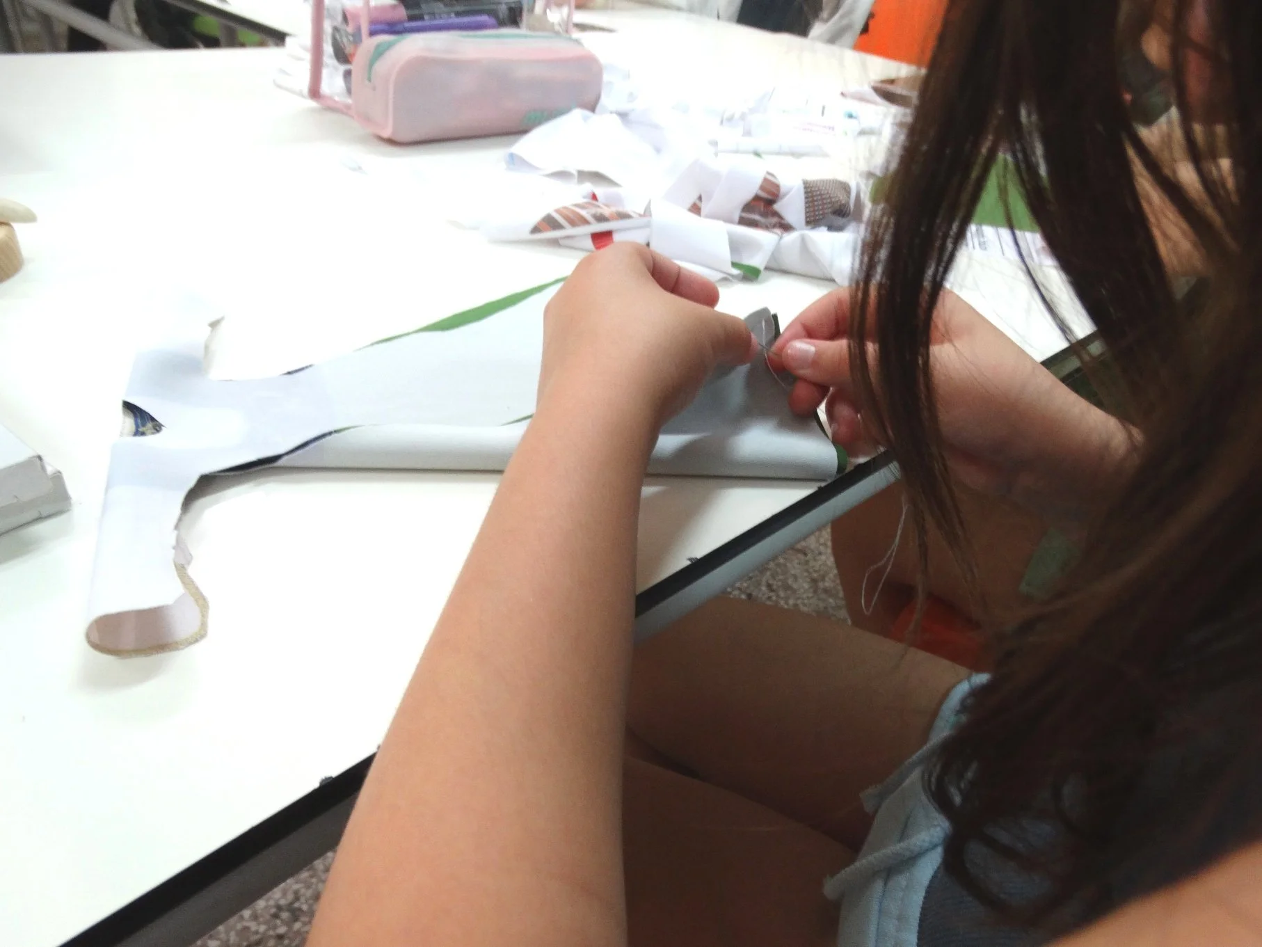 Σε μικρότερες ομάδες, υπάρχει δυνατότητα υφασμάτινης χειροτεχνίας με κόψιμο και ράψιμο.