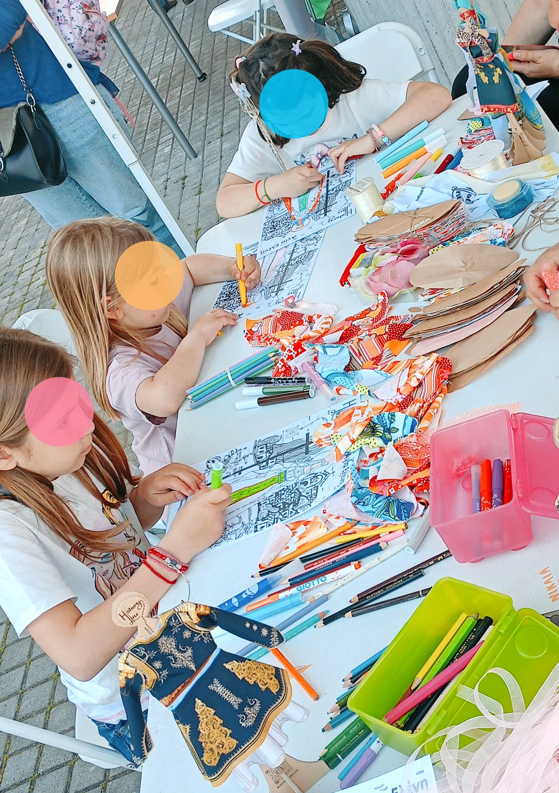 Υλικά : Το History Line φέρνει όλα τα βασικά υλικά της δράσης (εικαστικό υλικό, κούκλες, ενδυμασίες, παιχνίδι ρόλων). Σε περίπτωση που υπάρχει, είναι βοηθητικό τα παιδιά να έχουν μαζί τους τις κασετίνες με τα χρώματά τους.